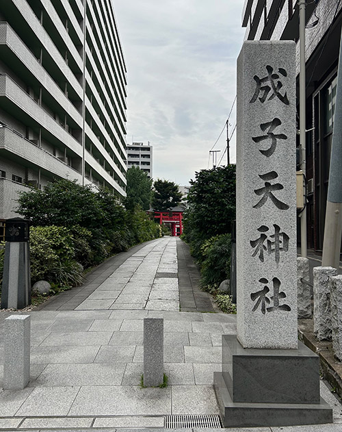 成子天神社の富士塚は、柏木・角筈地域(現在の北新宿・西新宿)の人々を中心に組織された丸藤成子講が奉祀していたもので、最盛期には約二〇〇名の講員がいましたが、現在は活出していません。