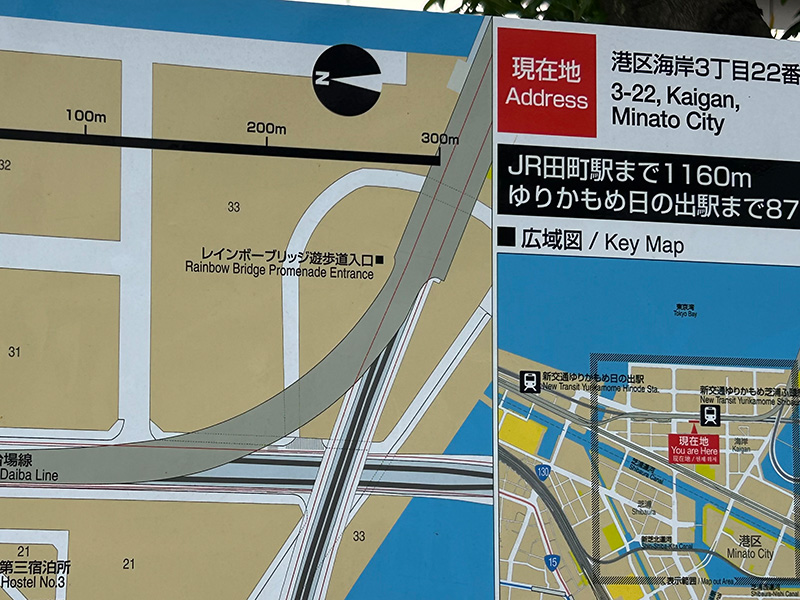 この時、Googleマップには、「レインボーブリッジ遊歩道」ってあるのは気づいてたけれど。