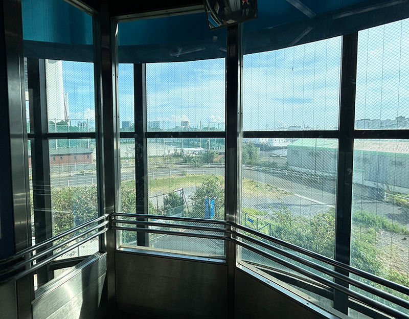 南側にあるエレベーターで7階へ。外の景色が見えます。