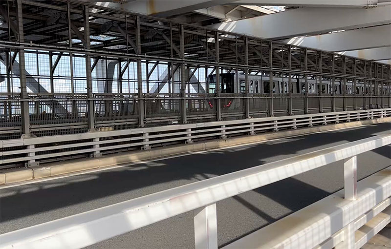 橋の真ん中は鉄道のゆりかもめ。並走して一般道。端は遊歩道なんですな。