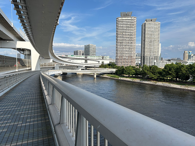 ついでに(?)新交通ゆりかもめが並走していて、電車でお台場に渡るルートとして有名なので、まさか人が歩いて渡れるとは思ってなかった時期があった。(ちなみに一般道もあったこと・・・知らなかった!このあたりで車移動することないもんで・・・)