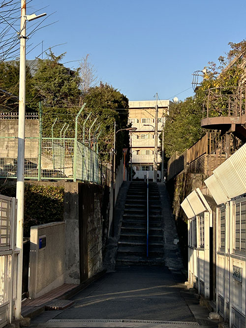 この坂途中のフェンスに閉ざされた階段はどこへ向かうのだろうと気にしつつ・・・